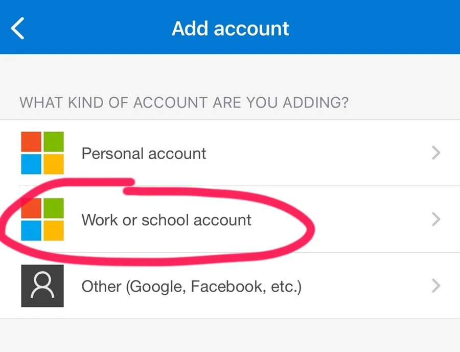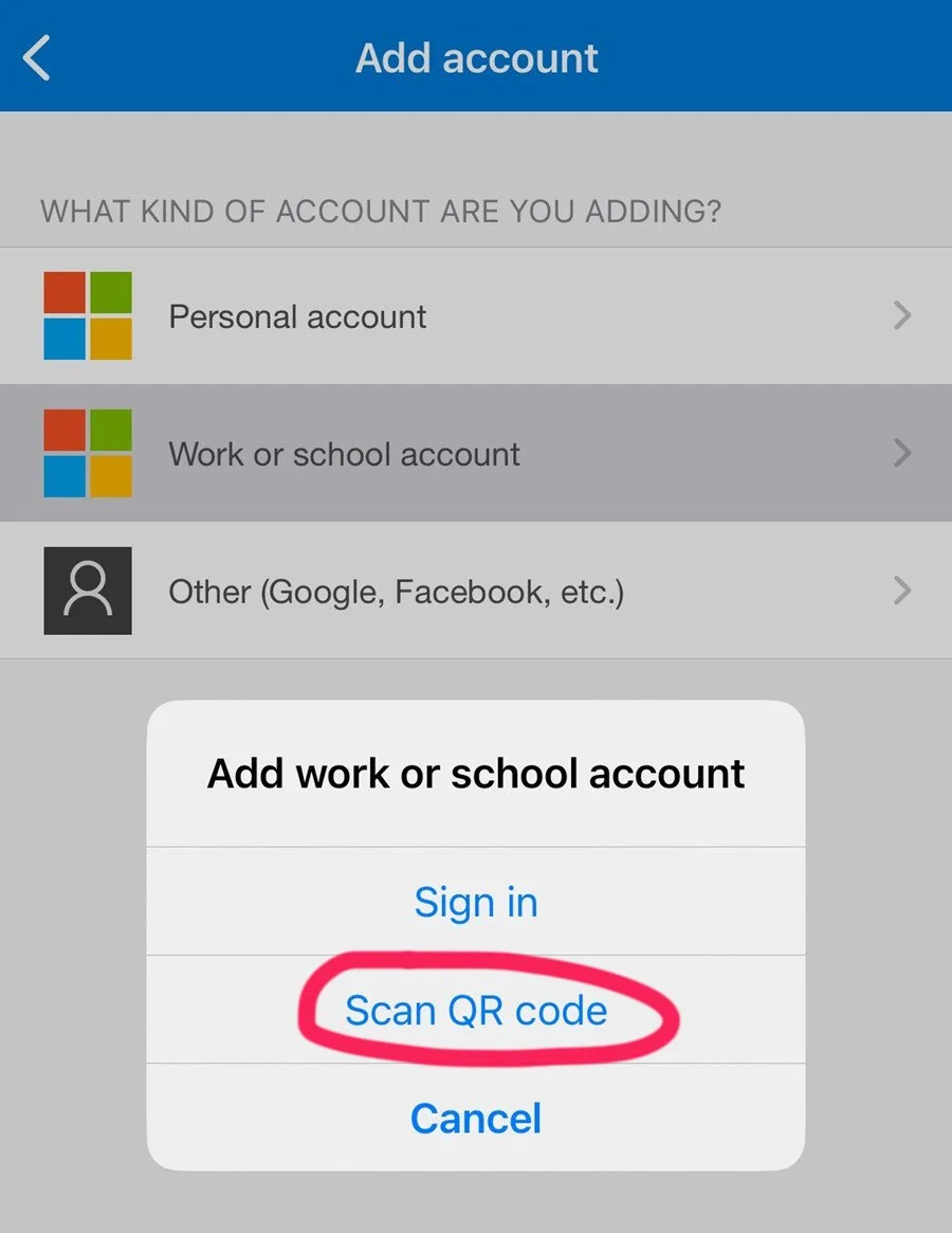 - Open the Microsoft Authenticator app on your phone and select “Add account.”